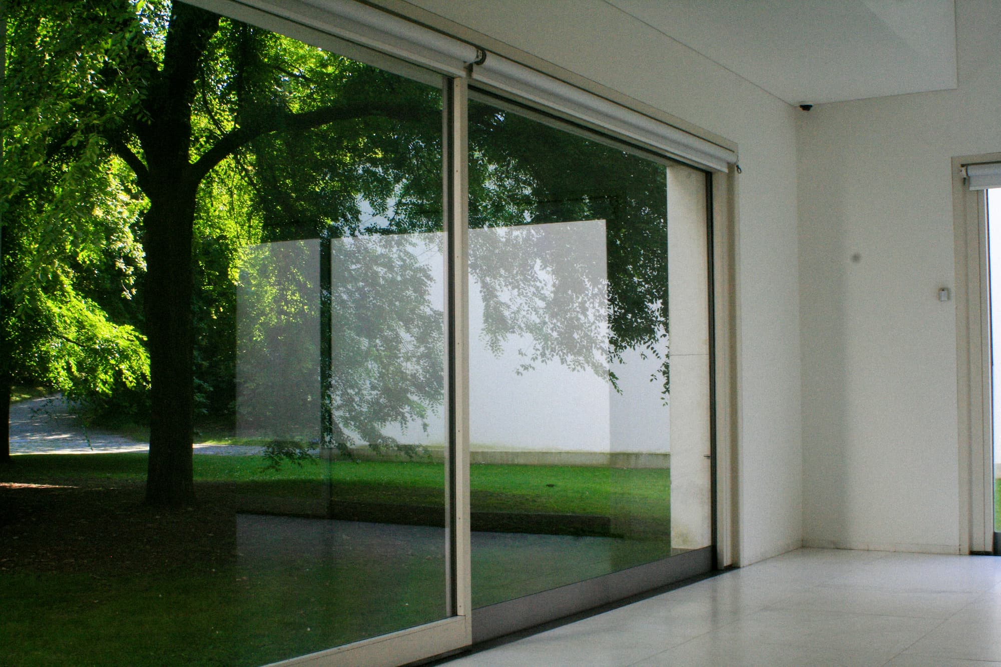 Roller blinds work when you’ve got limited space above or beside your sliding doors. They roll up completely into a compact housing, disappearing when you want full door access and light. For narrow sliding doors in bathrooms or laundries, they’re often the most practical choice.